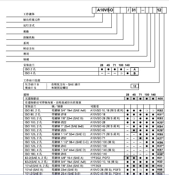 A10VSO型號 (31和52系列)